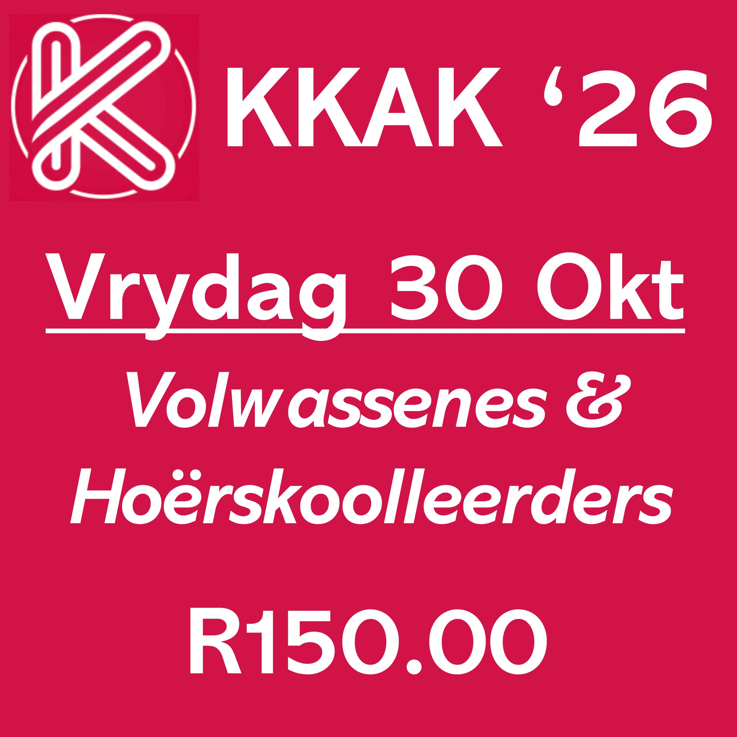 KKAK 2026 Vrydag 30 Oktober ’26 – Volwassenes